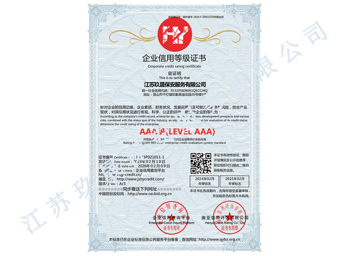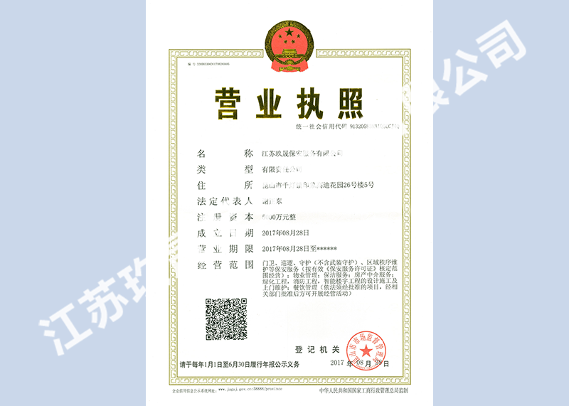 江蘇玖晟保安服務有限公司成立于江蘇省昆山市千燈鎮(zhèn)。注冊資金:5000萬,是擁有省公安廳頒發(fā)的保安服務許可證的企業(yè)【蘇公保服20170046】,也是昆山市保安協(xié)會常務理事單位。